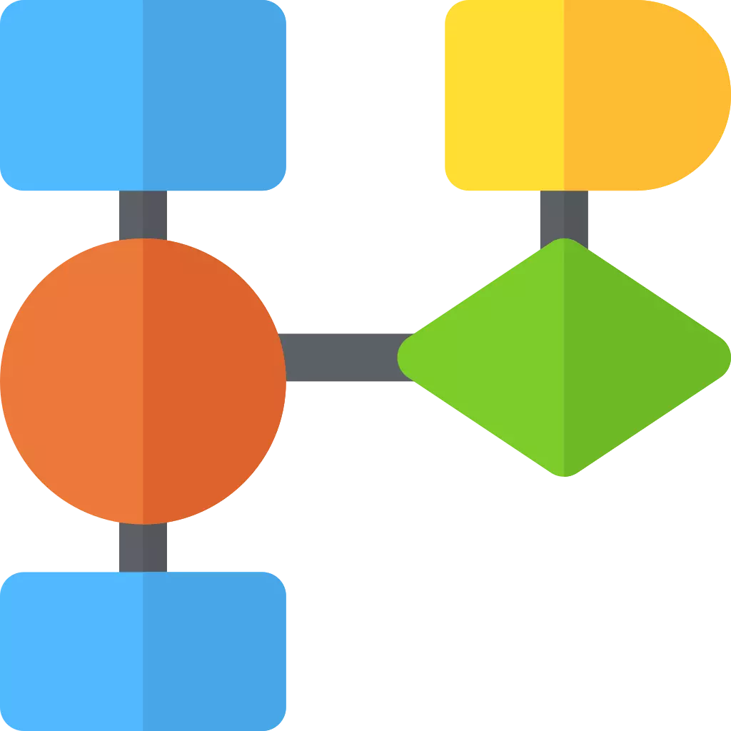 Яркие цветные иконки на тему Блок-схема, которые оживят ваши проекты.